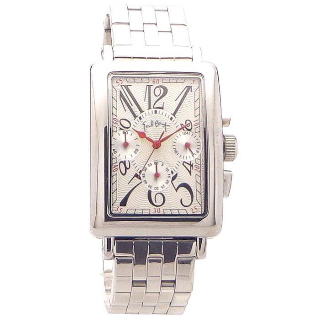 メンズ 腕時計 ホワイト クロノグラフ オールステンレス ストップウォッチ 24時間計 日本製ムーブメント 角型 レクタンギュラー