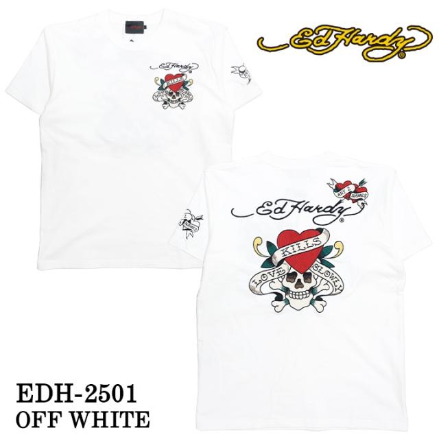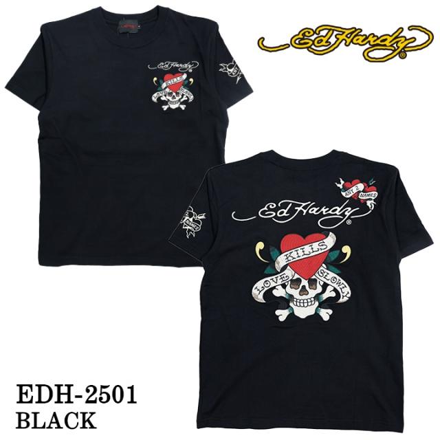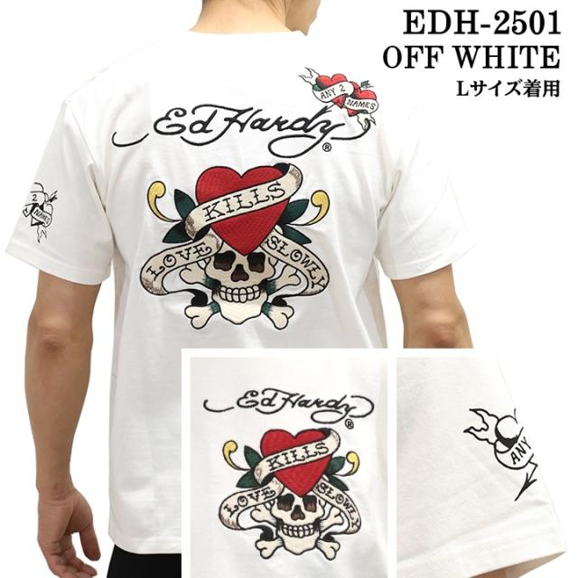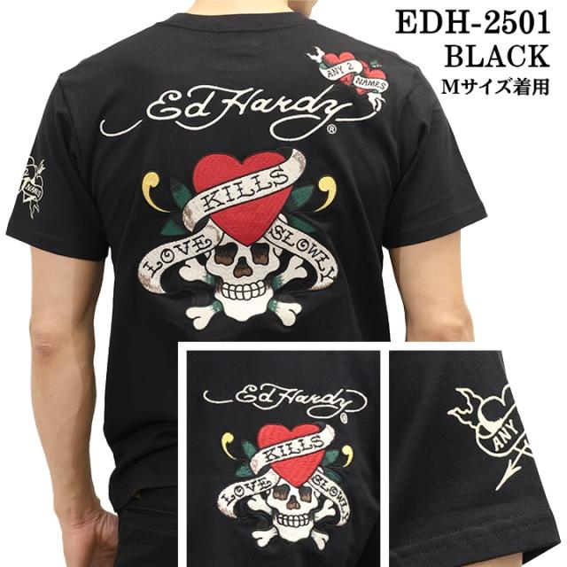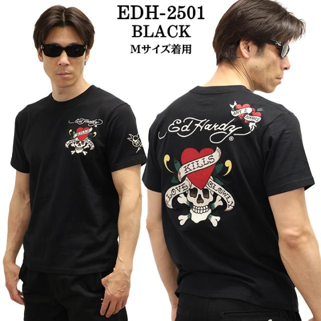 Ed Hardy エドハーディー 刺繍プリント 天竺 半袖Tシャツ メンズ ロンTEE edh-2501