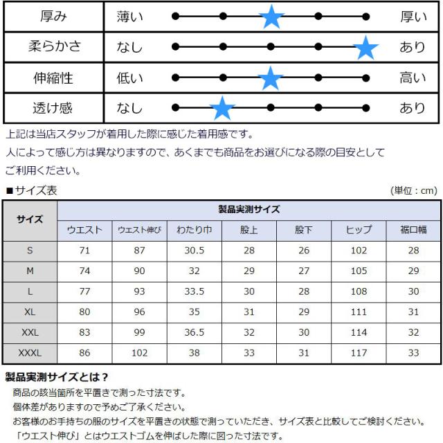 ウエストはゴム+ドローストリング仕様、フィット感を調整しやすく、ノンストレスの穿き心地