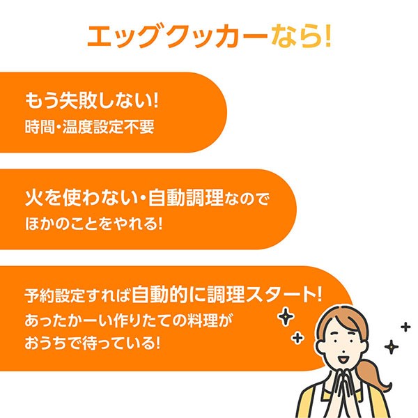 卵料理失敗ゼロ!全自動調理で時間調節不要!初心者でも失敗しません。