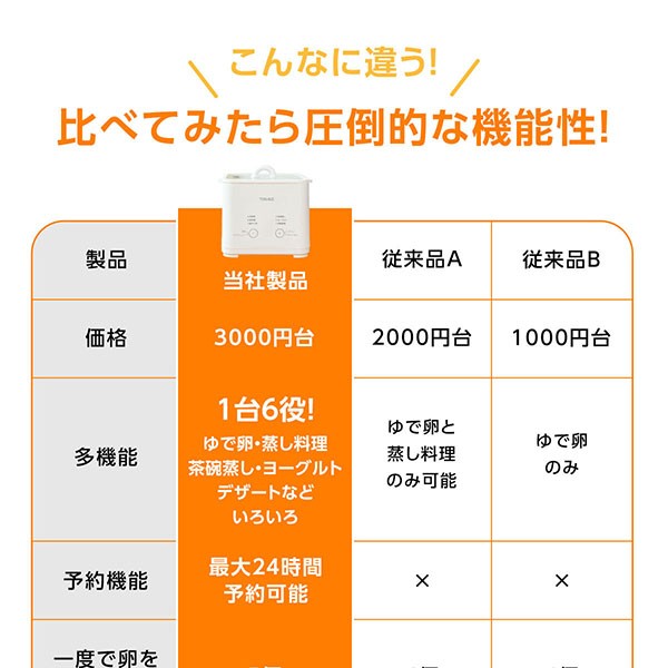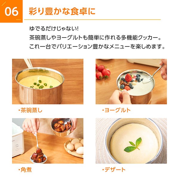 ・【多機能で食卓を豊かに】ゆで卵だけじゃない!茶碗蒸しやヨーグルトまで簡単に作れる。これ一台でバリエーション豊かなメニューを楽しめます。