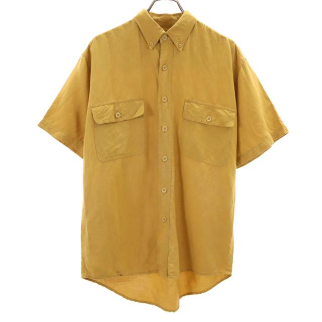 UNIQLO ユニクロ リネンブレンド 半袖 ボタンダウンシャツ M 黄土色 メンズ