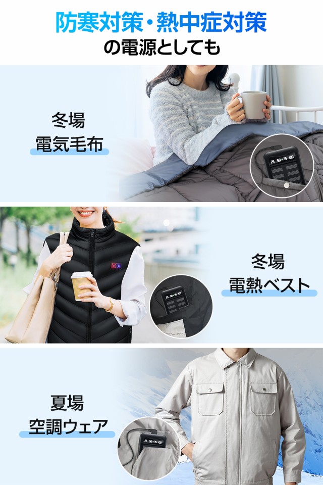 市販したモバイルバッテリーと違い、ポケットにも収まるほどコンパクトで、重量は約240gと軽量で厚みも少ないため、。スマホと一緒に持っていてもストレスになりません!出張、旅行やキャンプなど電源の取りにくい環境でもスマホの電源を心配しなくて楽です。iPhone 13を3回充電できるほど大容量なので、複数回充電したい人や、タブレット端末・ワイヤレスイヤホンなどスマホ以外の機器も充電したい人におすすめできるモバイルバッテリー。