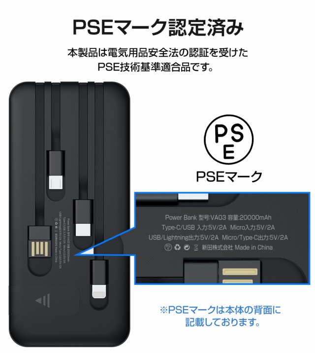 【20000mAh超大容量・急速充電モバイルバッテリー】