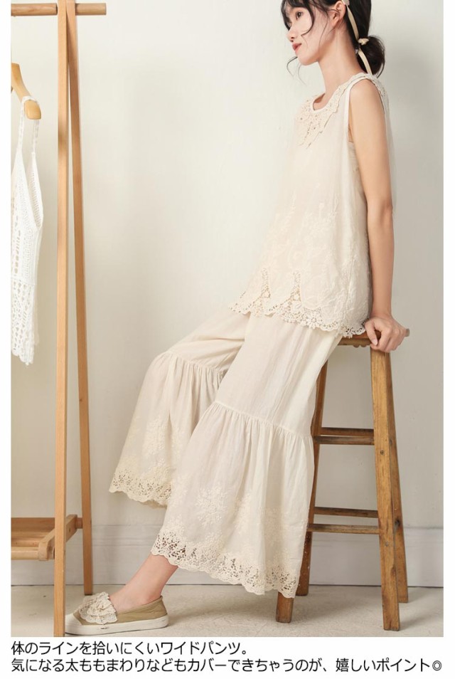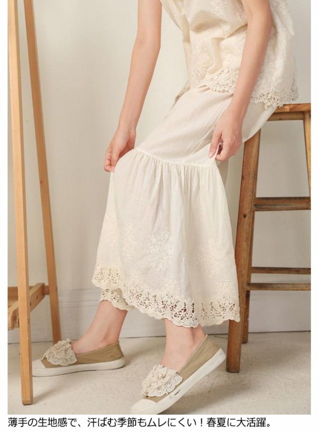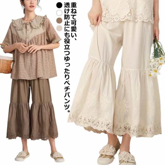 重ね着 送料無料 ペチパンツ マキシ レース ロング コットン 透け防止 パンツ ペチコート インナー アンダーウェア ランジェリー 下着 裾レース 刺繍 ゆったり かわいい 重ね履き マキシ カジュアル ボトムス シンプル 無地 ナチュラル レイヤード