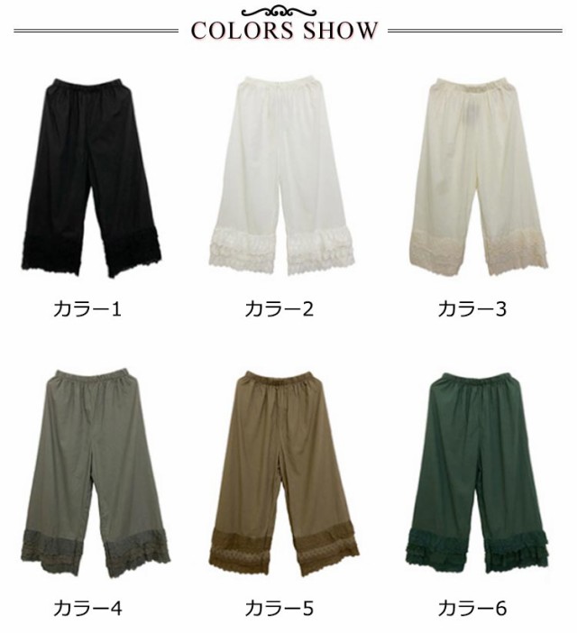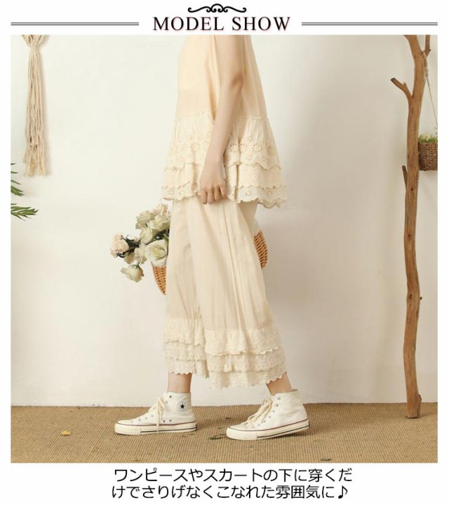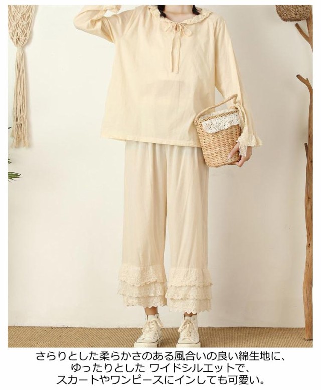刺繍 レイヤード 下着 パンツ ワイド 重ね履き 透け防止 ペチパンツ ロング ペチコート アンダーウェア 重ね着 インナー ウエストゴム 裾パンツ 裾レース コットン ゆったり かわいい カジュアル ボトムス シンプル 無地 ナチュラル 送料無料