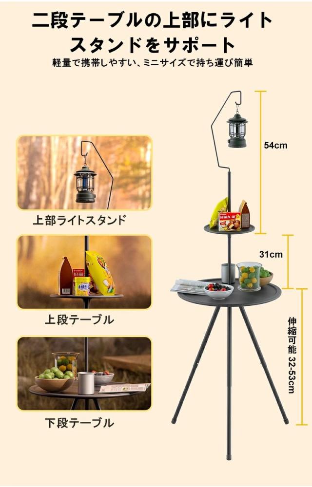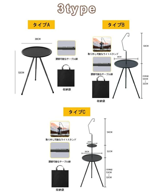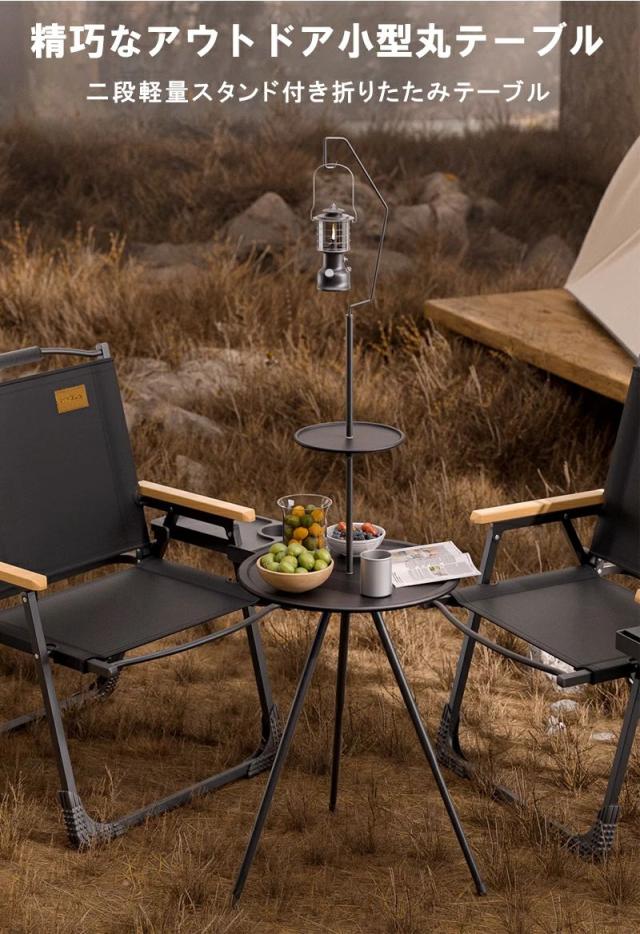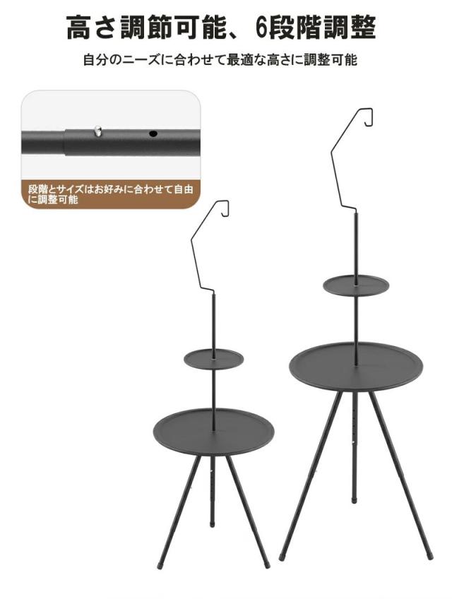 キャンプ テーブル 折りたたみ 収納袋付き 持ち運び便利 丸型三脚キャンプテーブル 安定性 軽量 サイドテーブル アウトドアテーブル 高さ調整 コンパクト お手入れ簡単 キャンプグッズ 黒 おしゃれ