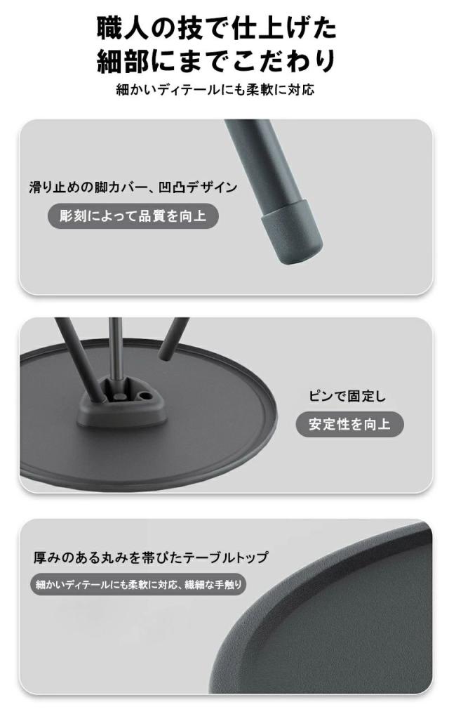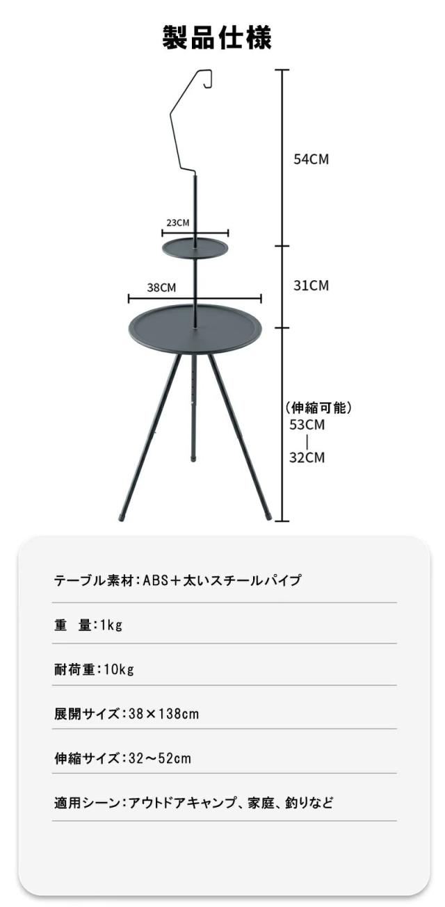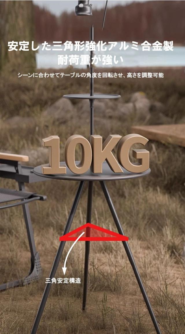 商品名とキャッチコピーキャンプ テーブル 折りたたみ 収納袋付き 持ち運び便利 丸型三脚キャンプテーブル 安定性 軽量 サイドテーブル アウトドアテーブル 高さ調整 コンパクト お手入れ簡単 キャンプグッズ 黒 おしゃれキャンプ テーブル コンパクト 丸型三脚テーブル ポータブルテーブル サイドテーブル 軽量 収納袋付 簡単収納