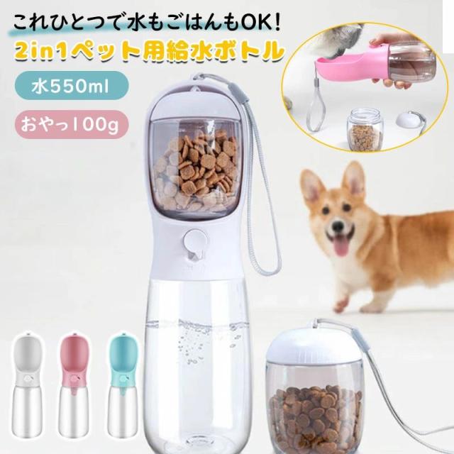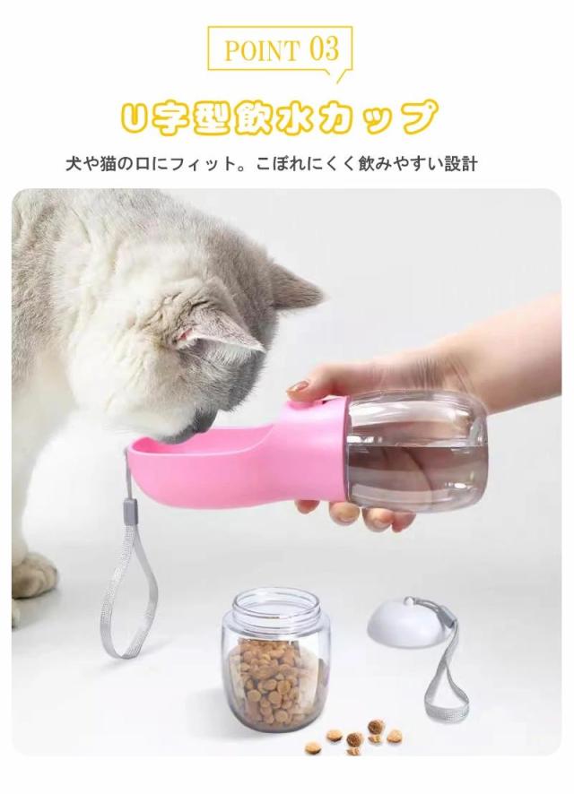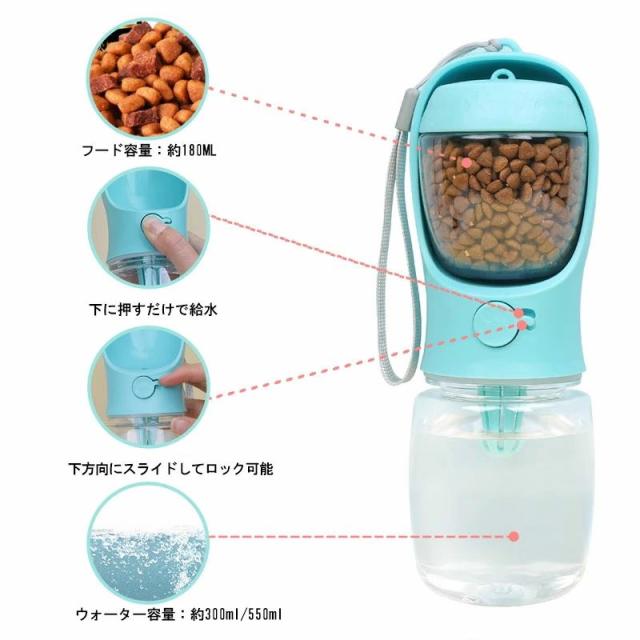 ペット給水ボトル ペットボトル 水 ご飯 両用 犬用給水器 猫用給水ボトル 携帯用ペットボトル 散歩用給水器 ペット水筒 フードケース付き ペット外出グッズ 多機能 ペット用品 ペット旅行グッズ ペットお出かけ便利グッズ