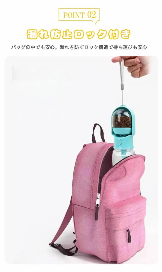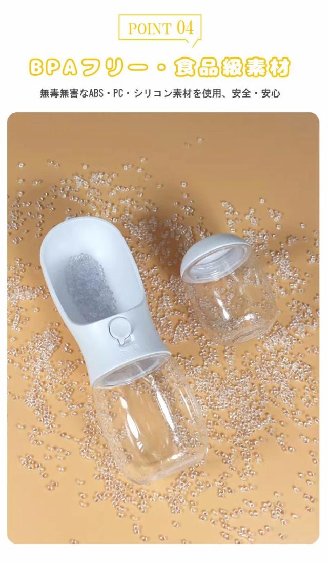 商品名 ペット給水ボトル 材質 プラスチック カラー ブルー、ピンク、ホワイト 容量 550ml(給水)+100g(フード)300ml(給水)+100g(フード) おすすめポイント 水とフードをこれ一つに!お散歩や旅行中でも、ペットの水分補給とごはんが同時にできる便利な2in1ボトル。持ち運びラクラクで、外出先でも安心です。選べる2サイズ・ちょうどいい容量550ml+100gと300ml+100gの2タイプをご用意。ワンちゃんやネコちゃんのサイズやお出かけ時間に合わせて選べます。片手で簡単操作・ワンタッチ給水ボタンを押すだけで水が出て、残った水は戻せる設計。無駄なく使えてとってもエコ!軽量&コンパクト設計バッグにもすっきり収まるスリムな形状。持ち運びやすく、普段のお散歩やドライブにもぴったり。選べる3カラーで見た目もかわいいやさしいブルー・ピンク・ホワイトの3色展開。飼い主さんの好みに合わせて選べます♪ 関連キーワード ペット給水ボトル ペットボトル 水 ご飯 両用 犬用給水器 猫用給水ボトル 携帯用ペットボトル ドッグボトル キャットボトル 散歩用給水器 ペット水筒 フードケース付き ペット外出グッズ 多機能ペットボトル ペット用品 ペット旅行グッズ ペットお出かけ便利グッズ 水&フード一体型 二層構造ボトル ペット便利アイテム 商品名とキャッチコピーペット給水ボトル ペットボトル 水 ご飯 両用 犬用給水器 猫用給水ボトル 携帯用ペットボトル 散歩用給水器 ペット水筒 フードケース付き ペット外出グッズ 多機能 ペット用品 ペット旅行グッズ ペットお出かけ便利グッズ水もご飯もこれ1本でOK。犬用・猫用の多機能携帯ボトルです。300ml 550ml ピンク グリーン ホワイト商品名 ペット給水ボトル 材質 プラスチック カラー ブルー、ピンク、ホワイト 容量 550ml(給水)+100g(フード)300ml(給水)+100g(フード) おすすめポイント 水とフードをこれ一つに!お散歩や旅行中でも、ペットの水分補給とごはんが同時にできる便利な2in1ボトル。持ち運びラクラクで、外出先でも安心です。選べる2サイズ・ちょうどいい容量550ml+100gと300ml+100gの2タイプをご用意。ワンちゃんやネコちゃんのサイズやお出かけ時間に合わせて選べます。片手で簡単操作・ワンタッチ給水ボタンを押すだけで水が出て、残った水は戻せる設計。無駄なく使えてとってもエコ! 軽量&コンパクト設計バッグにもすっきり収まるスリムな形状。持ち運びやすく、普段のお散歩やドライブにもぴったり。選べる3カラーで見た目もかわいいやさしいブルー・ピンク・ホワイトの3色展開。飼い主さんの好みに合わせて選べます♪ 関連キーワード ペット給水ボトル ペットボトル 水 ご飯 両用 犬用給水器 猫用給水ボトル 携帯用ペットボトル ドッグボトル キャットボトル 散歩用給水器 ペット水筒 フードケース付き ペット外出グッズ 多機能ペットボトル ペット用品 ペット旅行グッズ ペットお出かけ便利グッズ 水&フード一体型 二層構造ボトル ペット便利アイテム