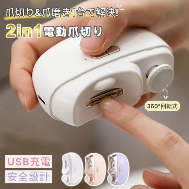 2in1 電動爪切 高齢者 足の爪 爪切り 赤ちゃん 電動 爪切り&爪磨き 角質ケア Type-C充電式 簡単操作 静音 電動つめ削り 介護用 高齢者 子供用 簡単操作 LEDライト付き 安全 軽量 コンパクト プレゼント ギフト