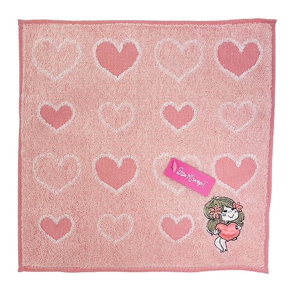水森亜土のハート×女の子デザインが可愛いハンドタオルです。ふわふわで使いやすくプレゼントにもおすすめ☆亜土ちゃんらしい可愛いデザインなので持ち歩くだけで気分も上がりそうです♪