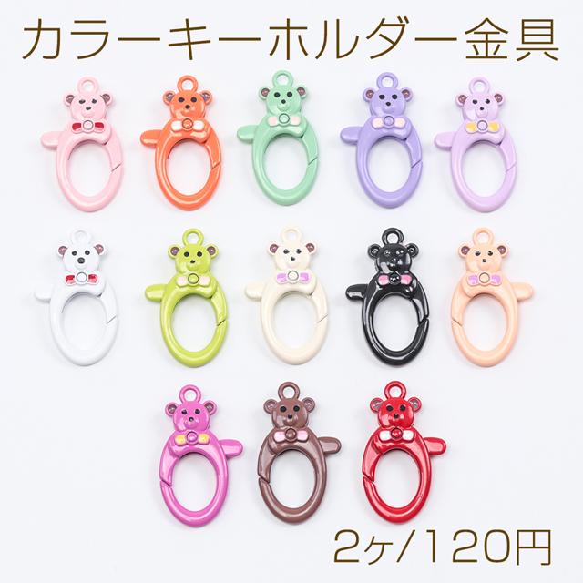 カラーキーホルダー金具 クマ 熊 留め具 キーリング キーホルダー カニカン ナスカン フック金具 約21×35mm(2ヶ)