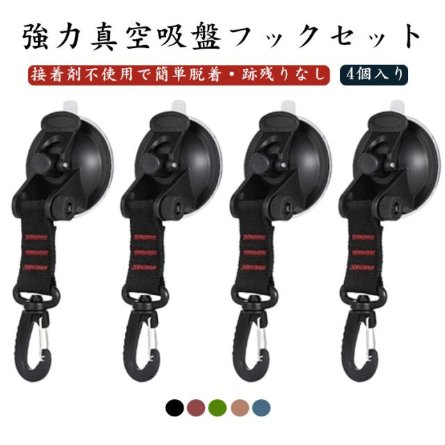 吸盤フック 強力 4個入り カーサイドタープ 吸盤 キャンプ タープ 固定フック タープ用 吸盤フック 車 連結 テント 車 タープ 連結 カー サイドオーニング サンシェード 車 連結用 大型 吸盤