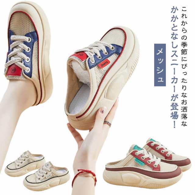 厚底 メッシュ レディース メッシュサンダル サボ スリッポン かかとなし サンダル 厚底スニーカー 踵なし メッシュスニーカー おしゃれ 春 夏 靴 シューズ 厚底サンダル かかとなし 履きやすい 歩きやすい 通気性