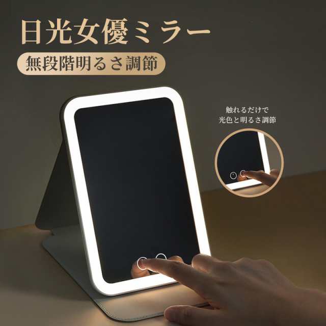 女優ミラー 卓上ミラー 日光女優ミラー 携帯型 ミラー LEDライト付きミラー ライトミラー 卓上鏡 化粧鏡 三色調光 LEDミラー 明るさ調節 タッチボタン 記憶機能 折りたたみ式