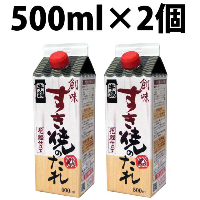 創味 すき焼きのたれ 500ml 2本 創味食品 すきやきのたれ 牛鍋 花鰹仕立て ストレート 鰹節 一番だし 調味料 鶏肉 照り焼き 牛丼 アイスクリーム 本醸造濃口醤油 魚の煮付け 魚 丼物 煮付け 和風 料理 炊き込みご飯 カレイの煮付け 牛すき 煮つけ 豚肉 酢豚 蒲焼