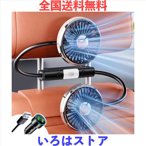 SMARTABL 2025新型 車載扇風機 車載ファン シガーソケット/USB 両用 後部座席 360度回転 LEDライド付き 3段階風量長配線 扇風機 車 ヘッ