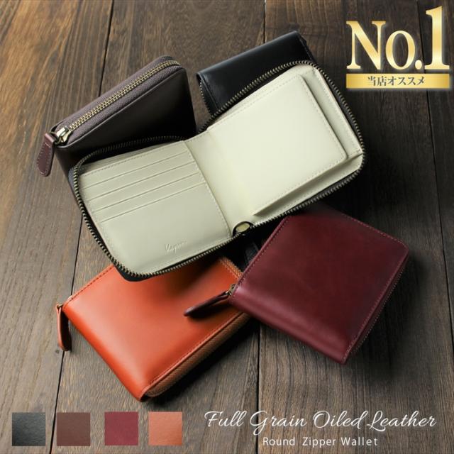 二つ折り財布 ラウンドファスナー 本革 カード12枚収納 交通系ICカード 対応 YKKファスナー メンズ レディース オイルレザー ギフトボックス Kapon