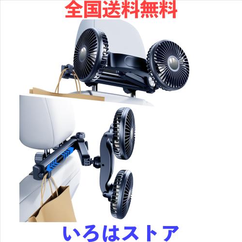 ◆商品名:【スライドレールと隠しフックをアップグレード】PANPHEN車用扇風機 後部座席風量3段階調節360°回転デュアルファン低騒音5 V/2 A USB延
