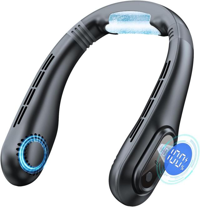 コンパクト扇風機 首掛け扇風機 ネッククーラー 2025夏新開発 ネックファン&LCD液晶ディスプレイ表示 冷感プレート付き 携帯扇風機 急速冷却 15db静音 3段階風量調整 16時間連続使用 Type-C急速充電 首掛けクーラー 強力送風 軽量 持ち運びやすい 熱中症対策