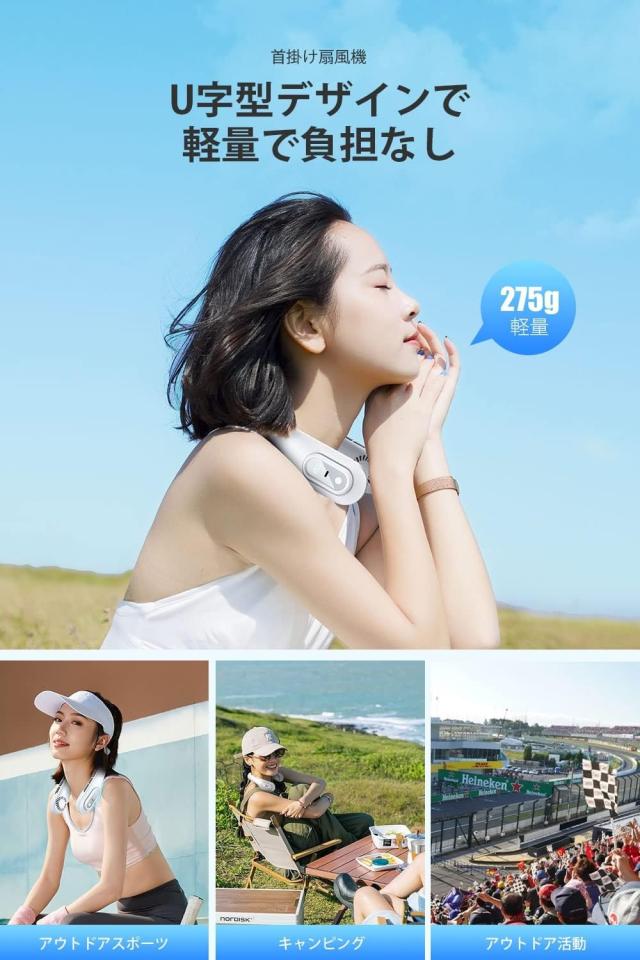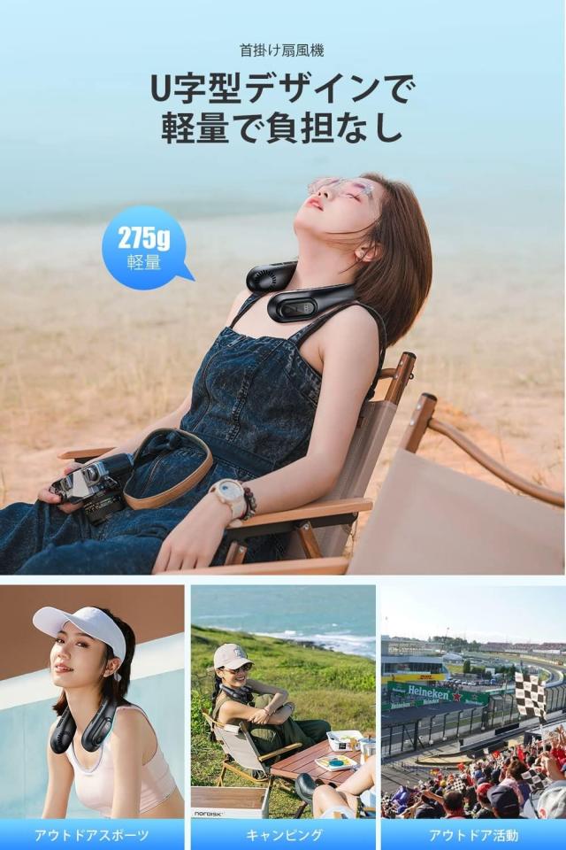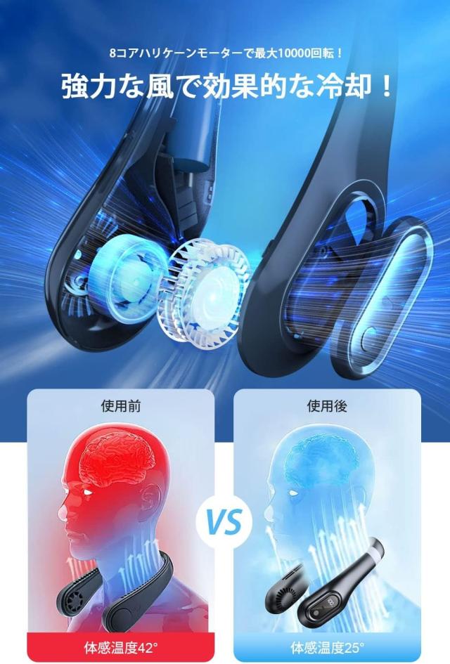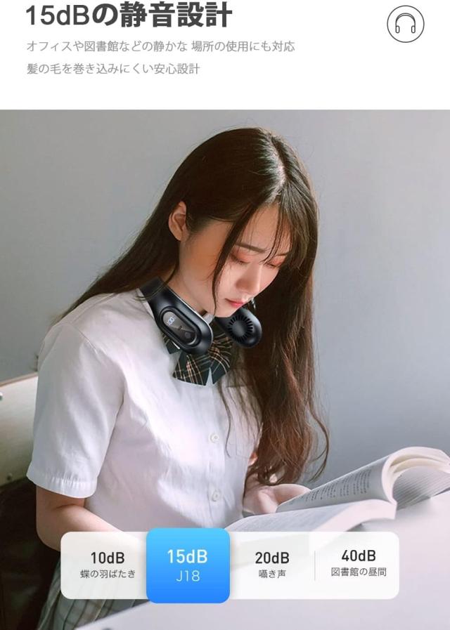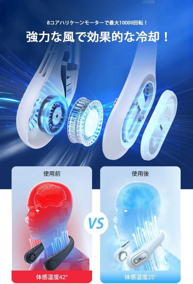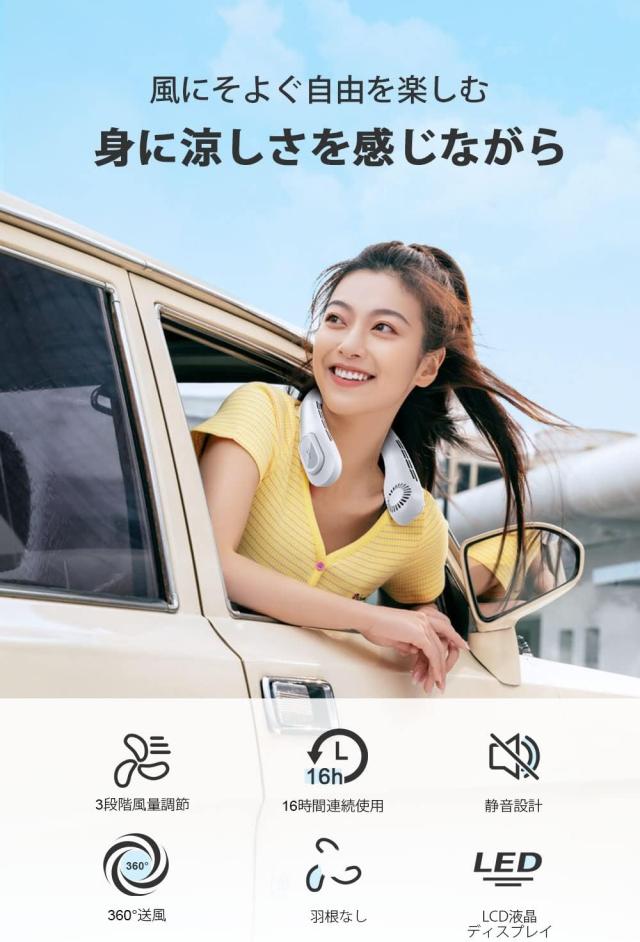 【羽なし設計&首掛けスタイルで両手を自由に涼感体験】 暑い夏の日、通勤・通学時の満員電車やオフィス、アウトドアやスポーツ観戦でも、首元から快適な涼風を届けてくれます。長時間安心して使用可能で、両手を解放され。軽量・小型設計で、収納簡単。静音設計でオフィスや図書館など静かな場所でも周囲に気兼ねなく使用できます。携帯扇風機として高い利便性を誇る。