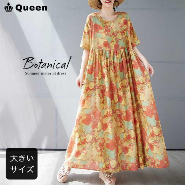 ★☆ワンピース 大きいサイズ 花柄 ロング丈 半袖 ゆったり フレアライン サマーワンピース 涼しい 体型カバー Aライン LL 3L 4L 5L 6L 春夏 リゾート 部屋着☆★