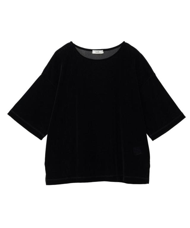 程よくシアーなベロア素材で仕立てたTシャツ。シンプルなクルーネックボディで着合わせしやすく、ゆとりのあるサイズ感で快適な着心地なのも魅力的です。サイドスリット入りでトップスインしやすく、すっきりとしたコーディネートを演出。合わせ方次第でロングシーズン活躍するおすすめのアイテムです。透け感[ややあり]