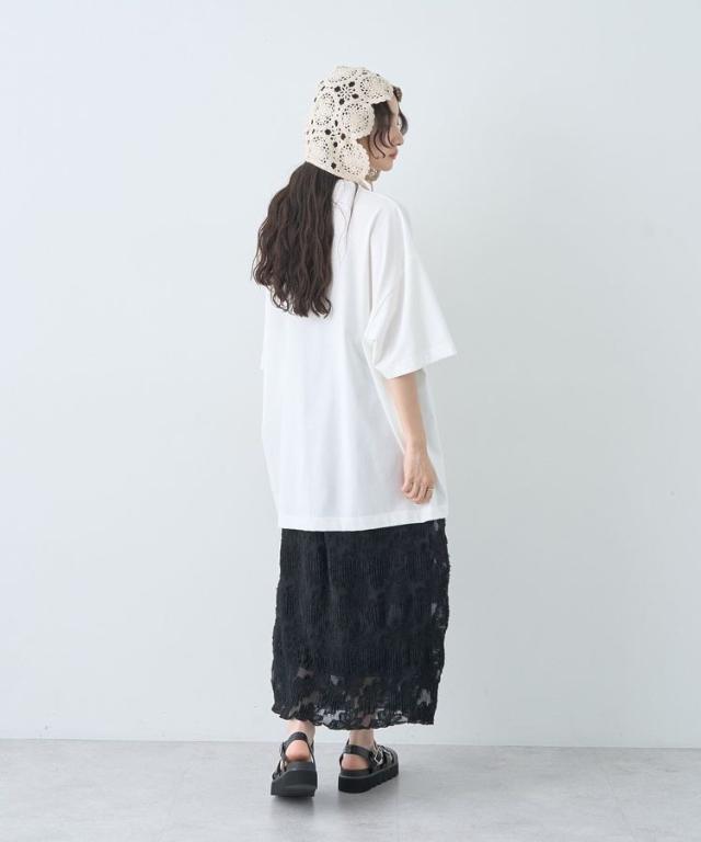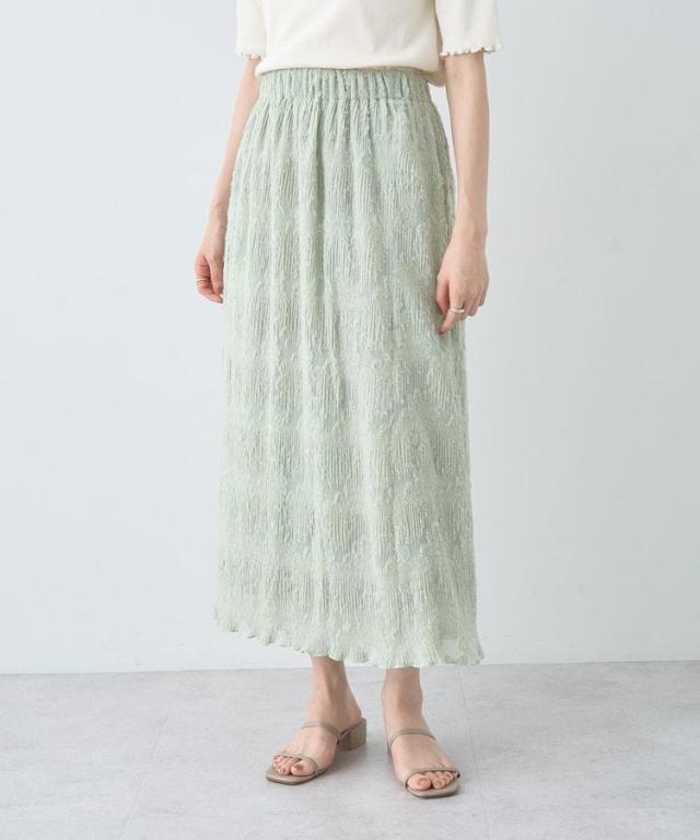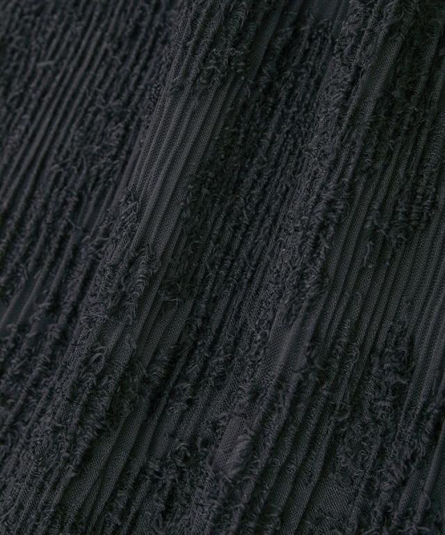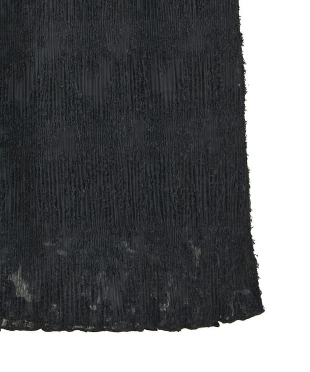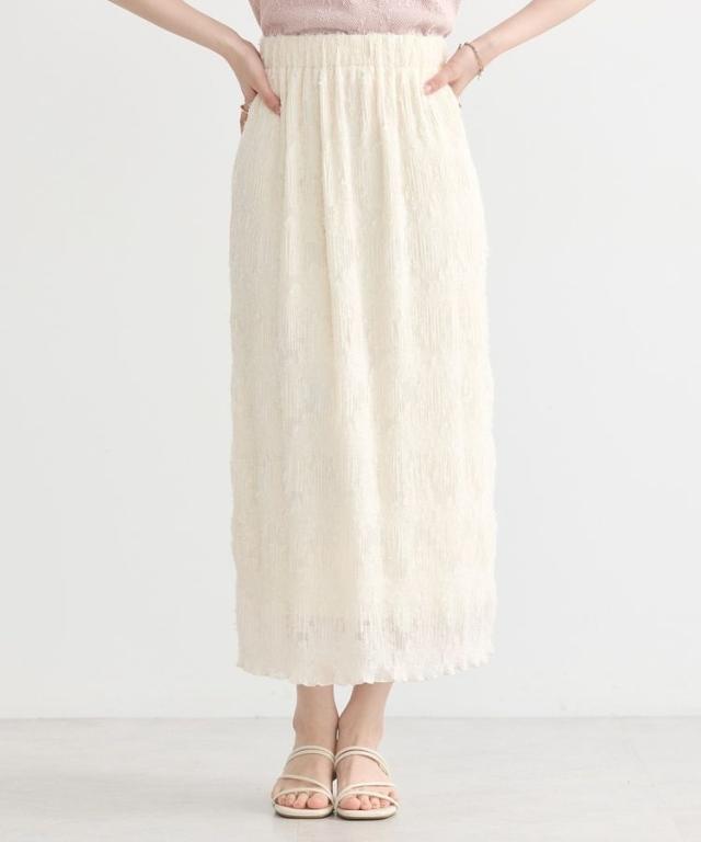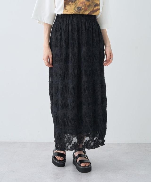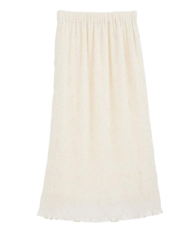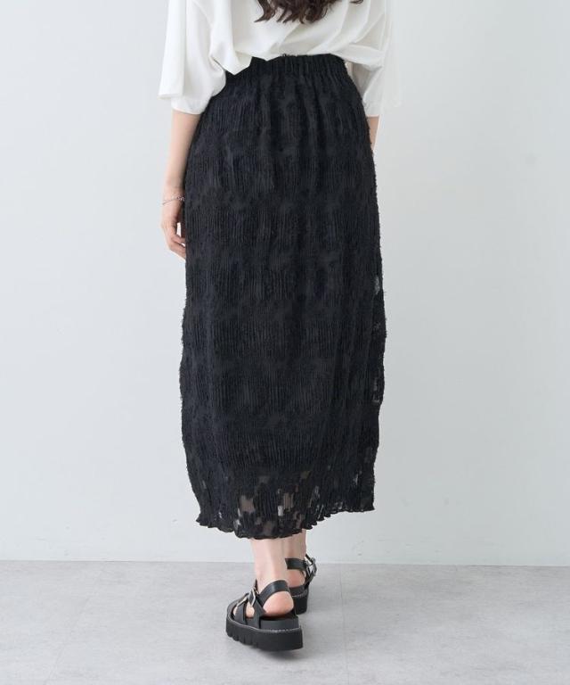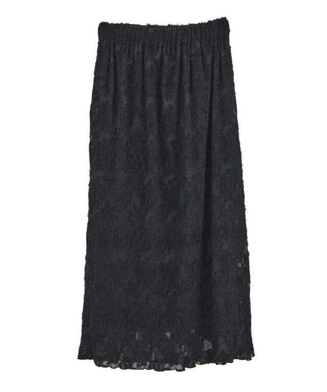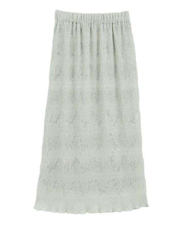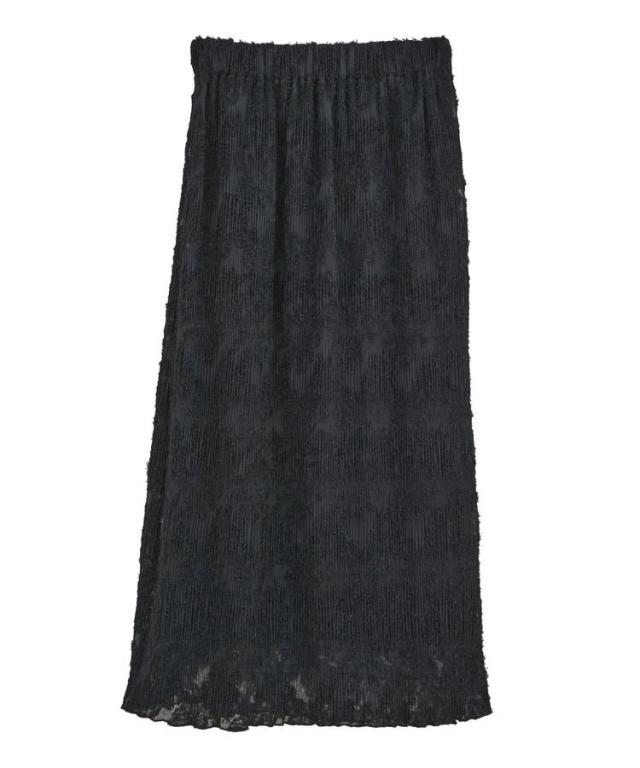 シアーなシャギージャガード生地で仕立てたナロースカート。ニュアンス感のあるマジョリカプリーツがスタイリングのアクセントにぴったりな一枚です。ウエスト総ゴム仕様とゆとりのあるIラインシルエットの快適な穿き心地も魅力のポイント。シンプルなトップスと合わせるだけでシーズナルなモードスタイルをお楽しみいただけます。