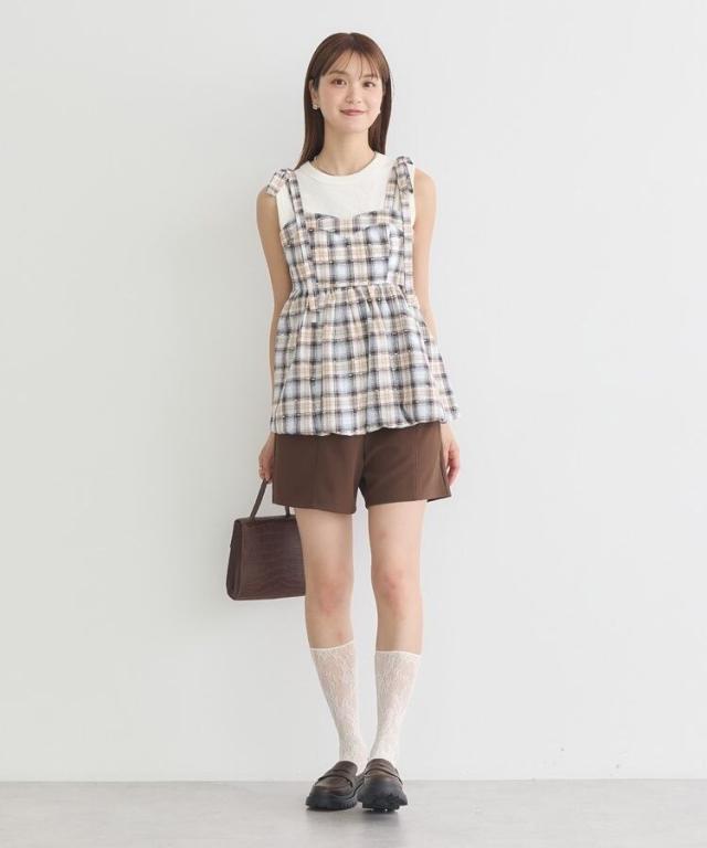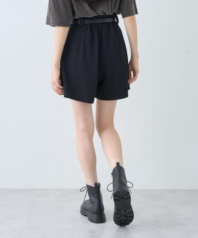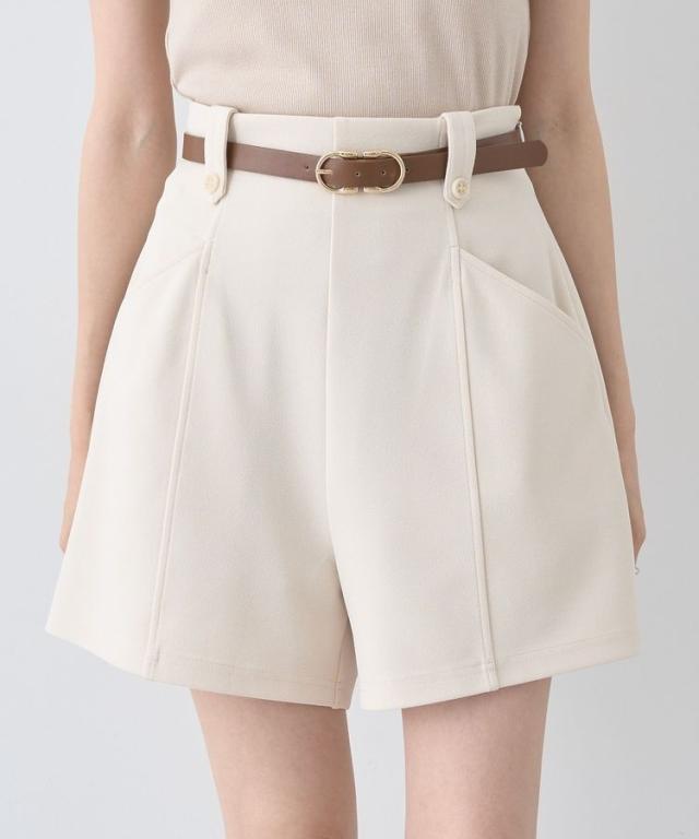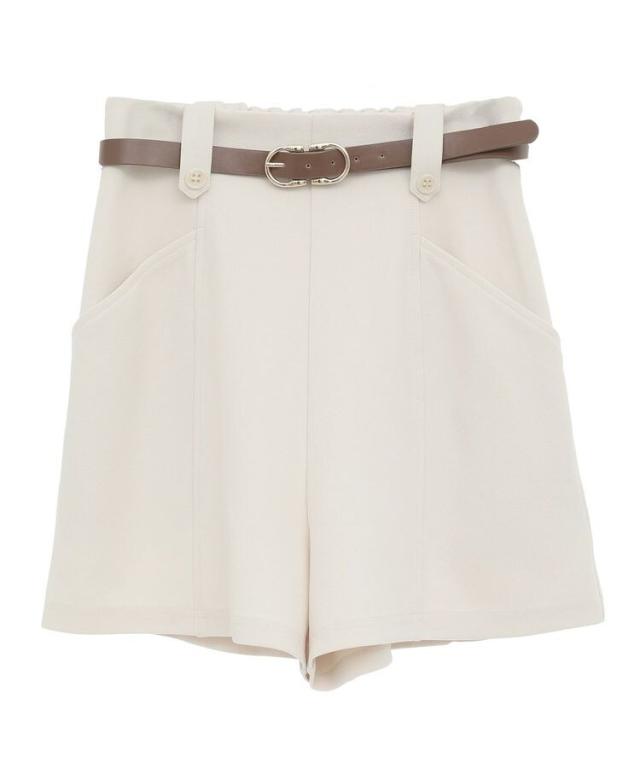 ボタンでアクセントを効かせたタブが目を惹くベルト付きショートパンツ。ハイウエストデザインで自然にスタイルアップを叶えてくれるのも嬉しいポイントです。ストレッチ性のある生地に、ウエストバックゴム仕様のリラクシーな着用感も魅力的。シンプルなワントーンカラーで柄物トップスとも好相性です。透け感[ややあり]