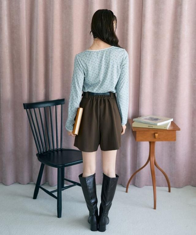 ベルト付きタブデザインショートパンツ