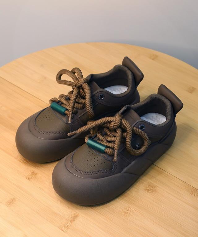 - 届くの遅かったけど(笑)コロンとして可愛いかったです。ワンサイズ大きめ買って良かったです。だいたい24から24・5履いてますが最近サイズ失敗ばかりなので25注文しました。ヒモが太いです。