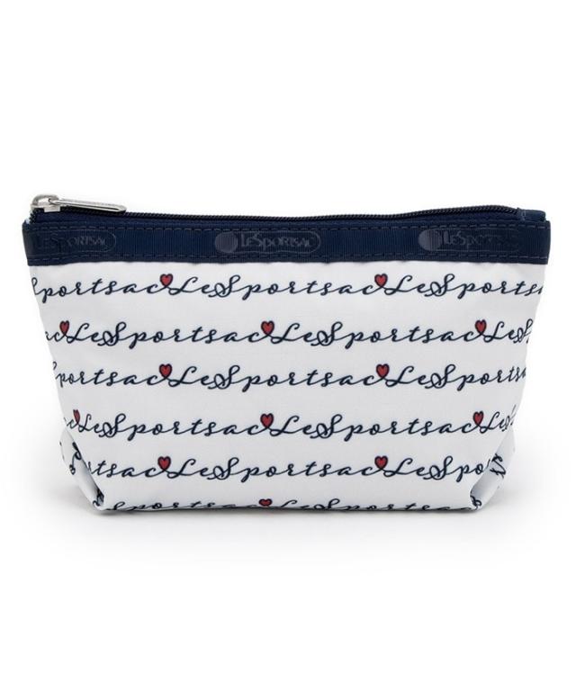 ブランドロゴ「LeSportsac」をボーダーにのようにデザイン。ホワイトベースにネイビーの配色が爽やかな印象で、小さな赤いハートが可愛らしいアクセントに。