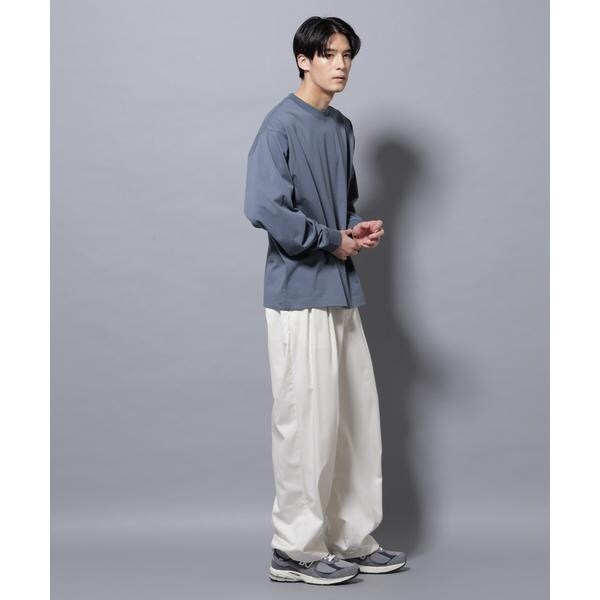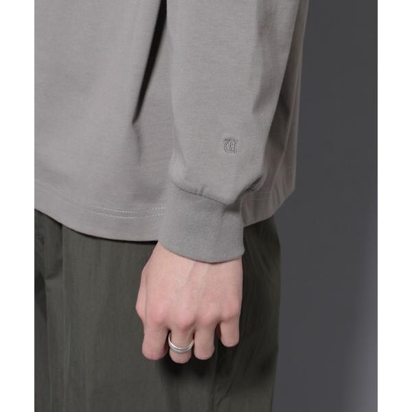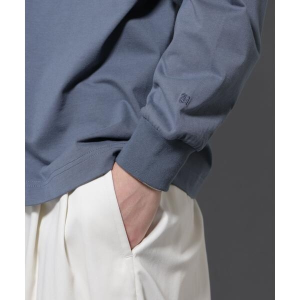 さりげなく袖口にあしらわれたナノユニバースの「N」のワンポイント刺繍がポイントの長袖Tシャツ。ルーズなサイズ感が一枚でもこなれた印象に仕上がるオススメの1着です。