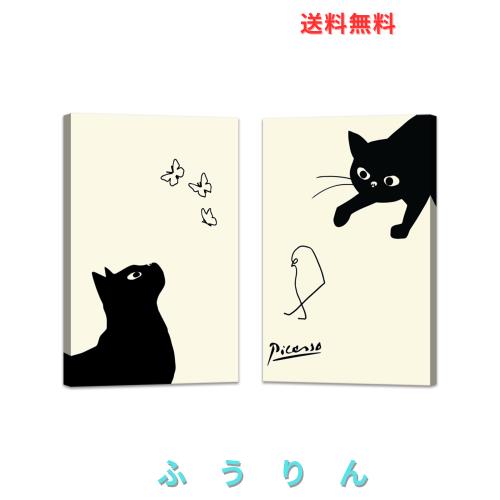 2枚 ピカソ 猫 アートパネル 絵画 壁飾り 開運 額付きポスター 木枠付きの完成品 (30x40cm x2Pcs)