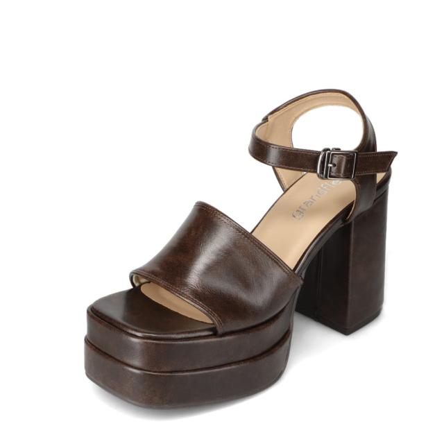 グランドフルール grandfleur QNS1201 レディース靴 靴 シューズ 2E相当 サンダル ストラップ 厚底 歩きやすい 安定感 ホールド 美脚 ストーム スクエアトゥ ダークブラウン