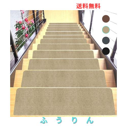 階段マット 滑り止め 階段用 ステップマットJAYFAN 69×22cmステップマット 滑りズレ防止吸着式 階段クッション無地 四季通用 りセット