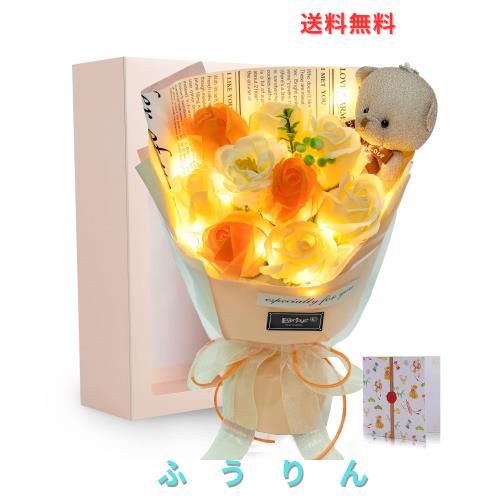 光る LED ライト 付き ソープフラワー 花束 バラ 造花 可愛いくま 誕生日 母の日 父の日 母のひプレゼント 敬老の日 お祝い 女性 退職祝