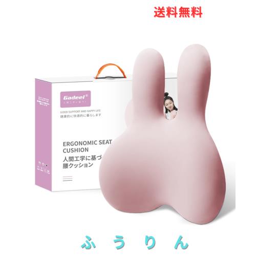 Gadeel 腰痛 クッション 低反発 ランバーサポート 背もたれクッション 人間工学 通気性 かわいいリラックスクッション 取付バンド調節可
