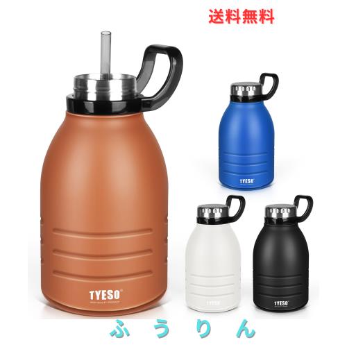 TYESO 水筒 スポーツボトル ステンレスボトル 1.5L 直飲み 保温保冷 洗いやすい ストロー付き 大容量 携帯便利 旅行 キャリ—ハンドル付