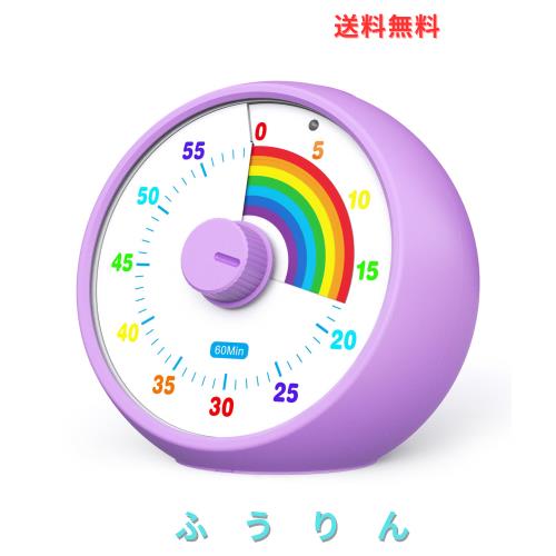 子供用60分ビジュアルタイマー 教室&キッチン用カウントダウンタイマー 勉強用デスクタイマー レインボー柄の子供用タイムマネージャーツ