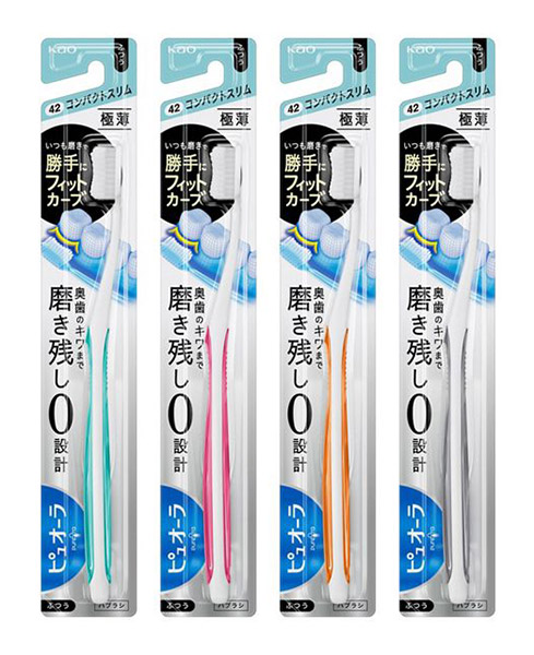 奥歯の奥まで届く花王史上最薄級の「極薄2.5mm」ヘッドといつもの磨き方で「勝手にフィットする」独自のカーブ形状を持ち合わせたハブラシ。