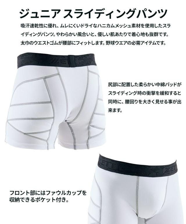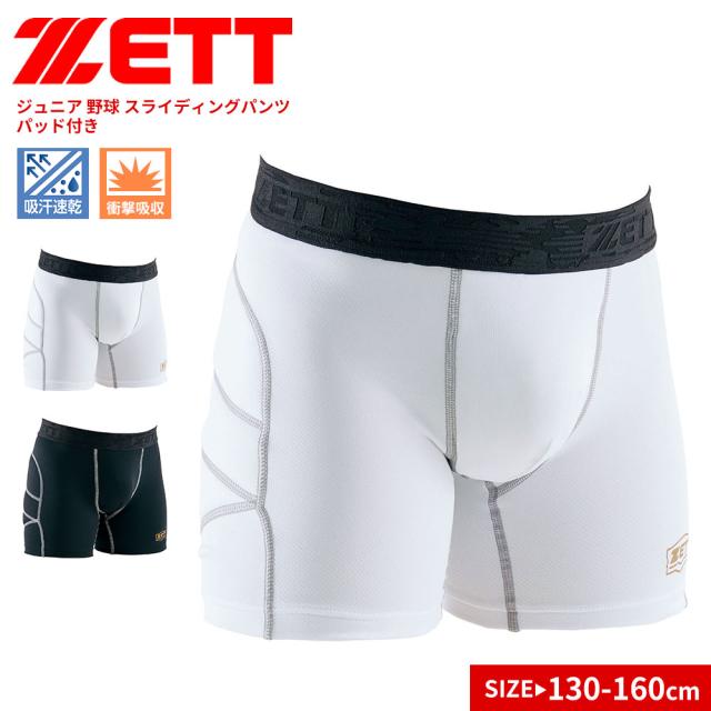ゼット スライディングパンツ 野球 ベースボール 少年用 スラパン パッド付き ユニフォーム 練習用 試合用 ジュニア メンズ ソフトボール トレーニング 吸汗 速乾 衝撃吸収 スポーツ カジュアル 無地 シンプル 白 黒 ホワイト ブラック ZETT BP220J