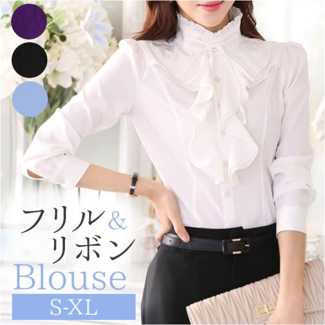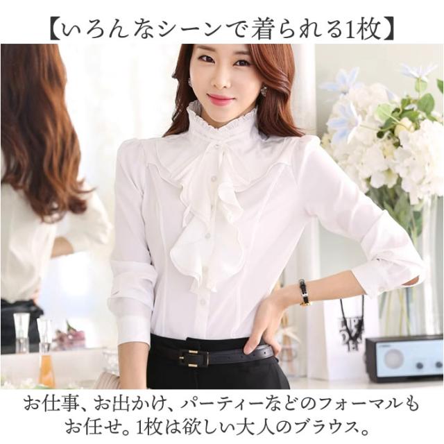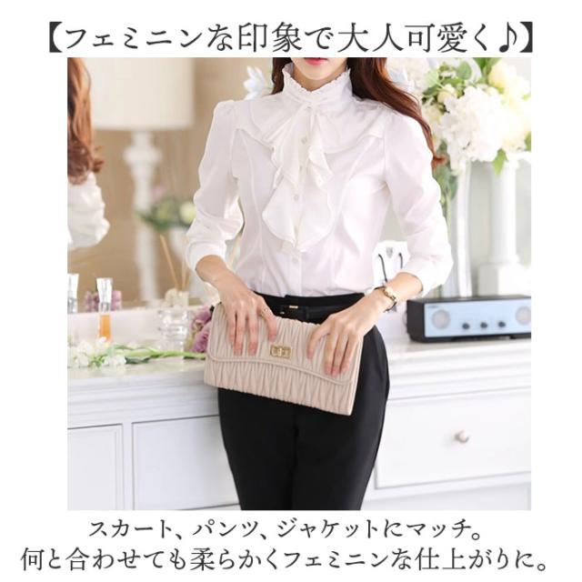 ブラウス 長袖 フリル 通販 レディース シャツ フォーマル ビジネス おしゃれ きれいめ フリルブラウス 入学式 入園式 卒園式 卒業式 立ち襟 スタンドカラー オフィス 仕事 上品
