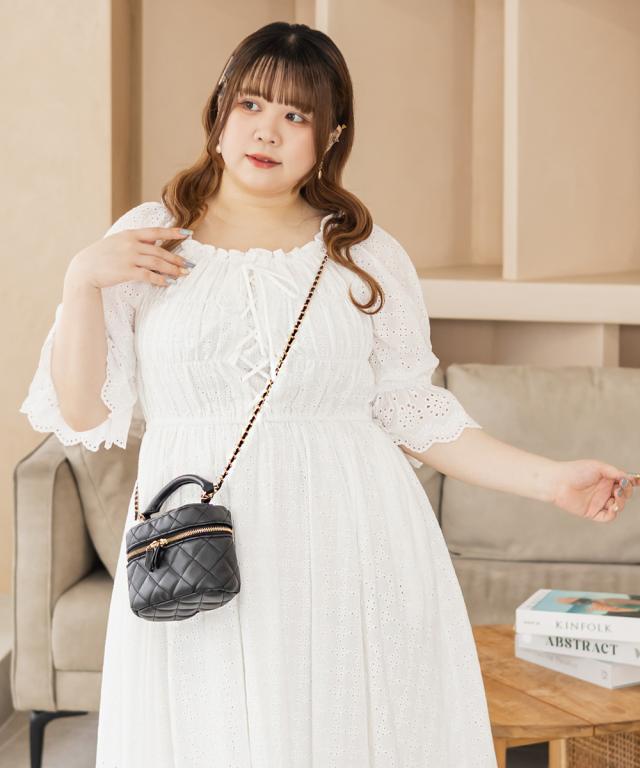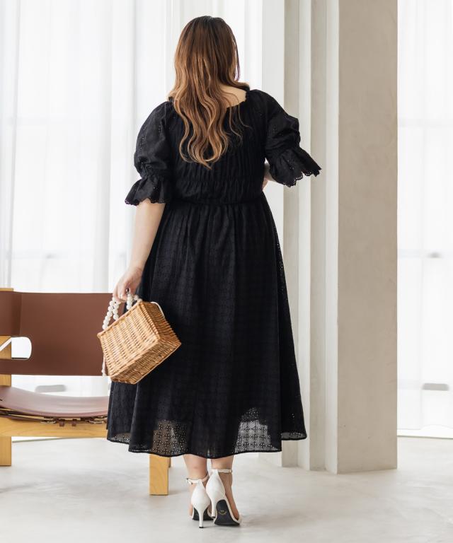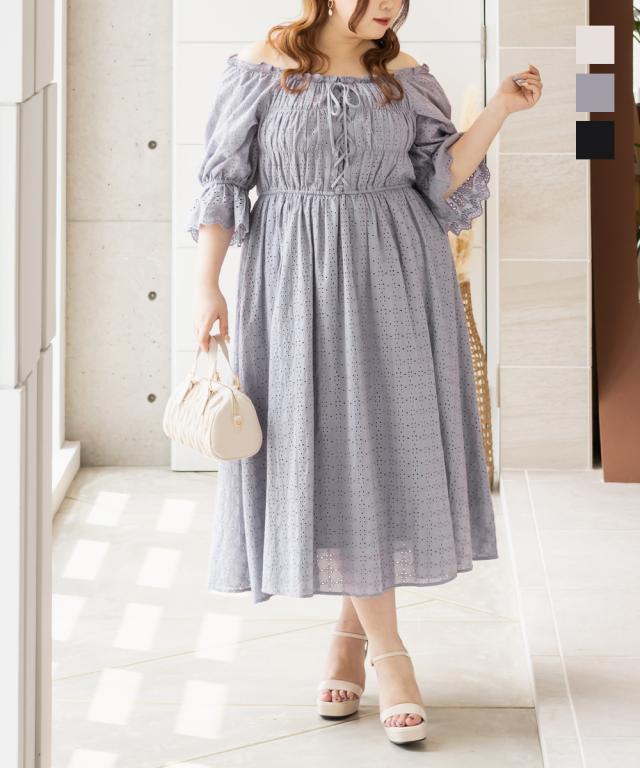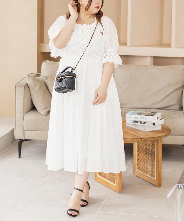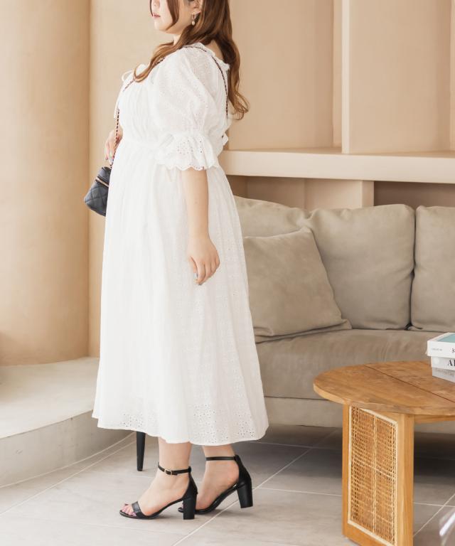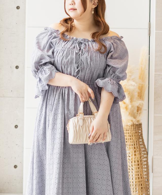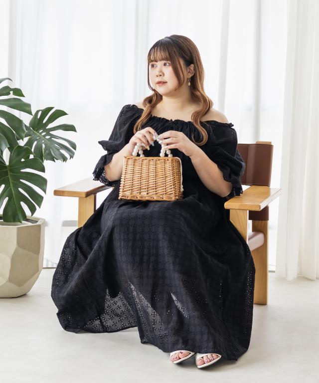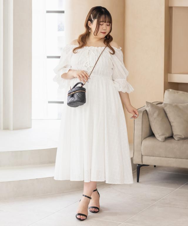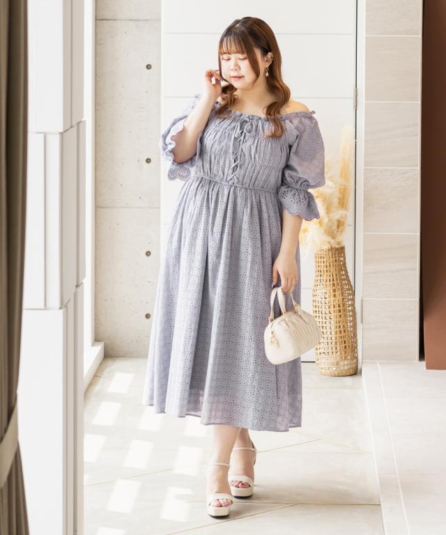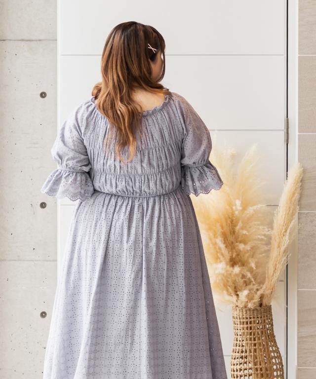 | 3Lサイズを着用しましたが、シャーリングゴムがしっかり伸びて、締めつけ感なく着られました!ネック周りもゴム入りで窮屈感なく、オフショルでもずり落ちずに着用出来ました◎立体感のあるアイレットレースで甘くなりすぎず、大人ガーリーに仕上がります!袖もふんわりで二の腕もさりげなくカバーできました♪夏らしい清涼感のある雰囲気で、大人フェミニンに着れる映えワンピースです! |