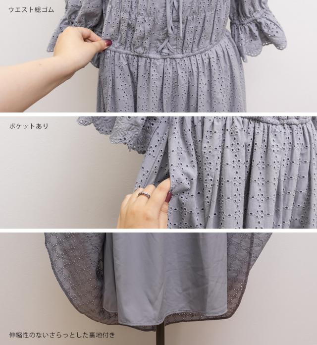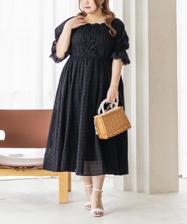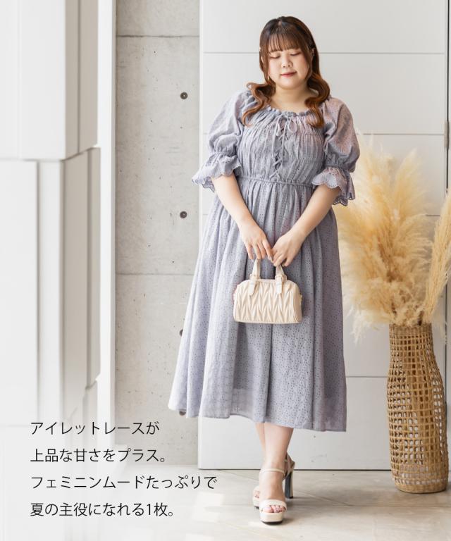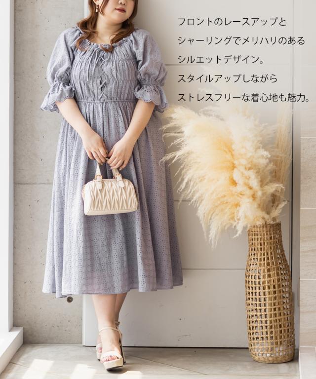 大きいサイズ/レディース/LL/3L/4L/CLETTEオリジナル★アイレットレースシャーリングワンピース