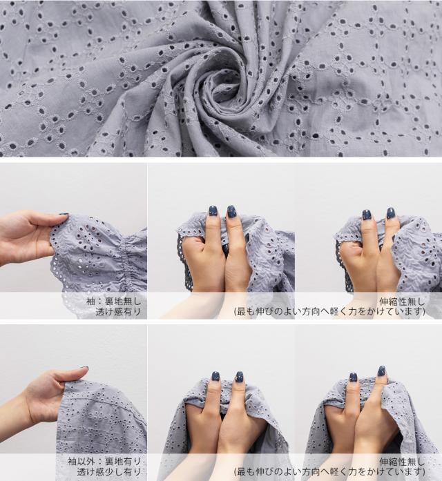 | 透け感のある柔らかいコットンレース素材です。 ※袖以外、さらっとした裏地付き。 |