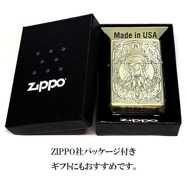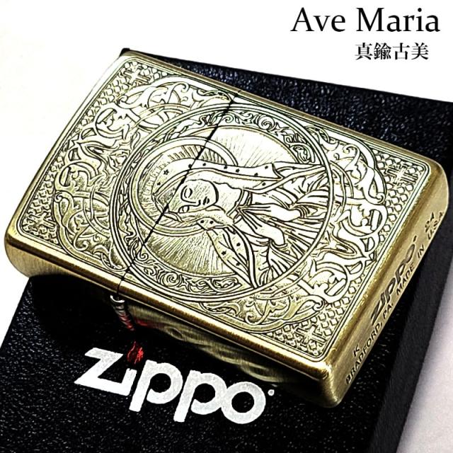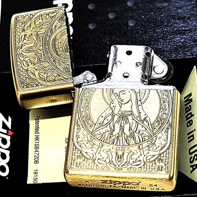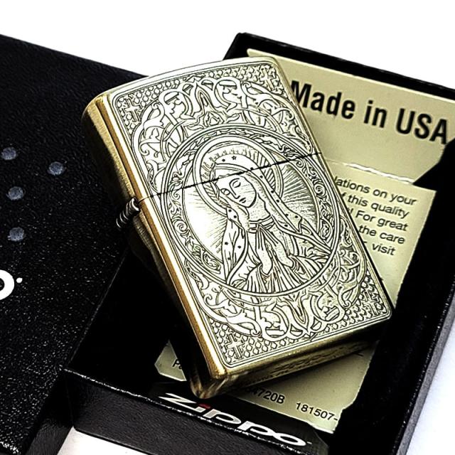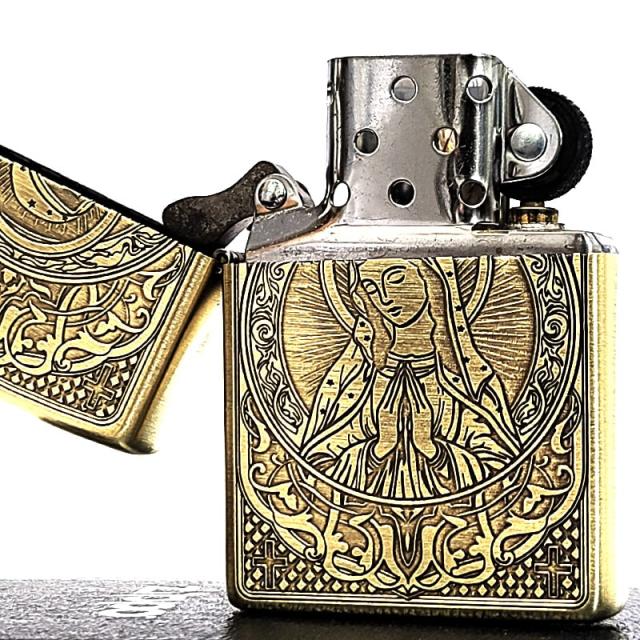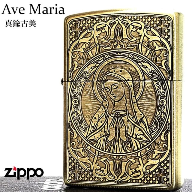 ZIPPO マリア 真鍮古美仕上げ おしゃれ ジッポ ライター 御守り AveMaria 彫刻 ブラス メンズ レディース アンティークゴールド お守り ギフト プレゼント