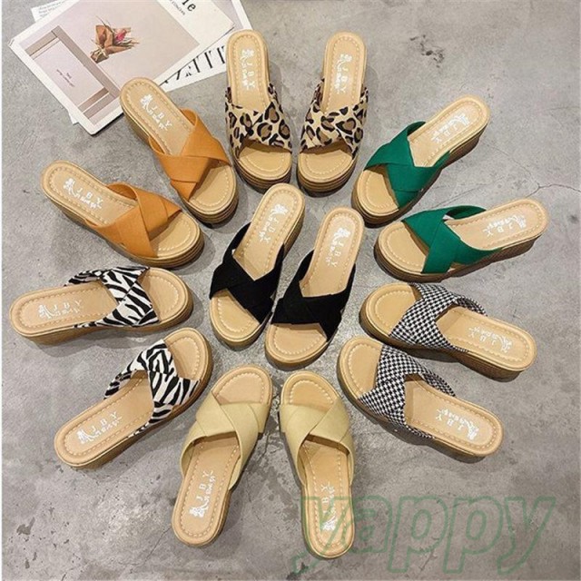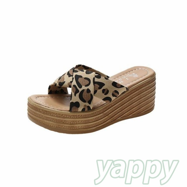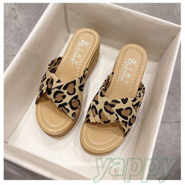 厚底サンダル レディース ウエッジソール 豹柄 スリッパ 歩きやすい ヒールサンダル 痛くない 美脚 滑らない 疲れにくい 韓国風 ミュール 春夏