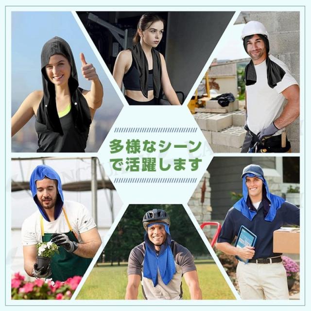 冷感タオル、心地よいひんやり感を提供するフード型タオル。